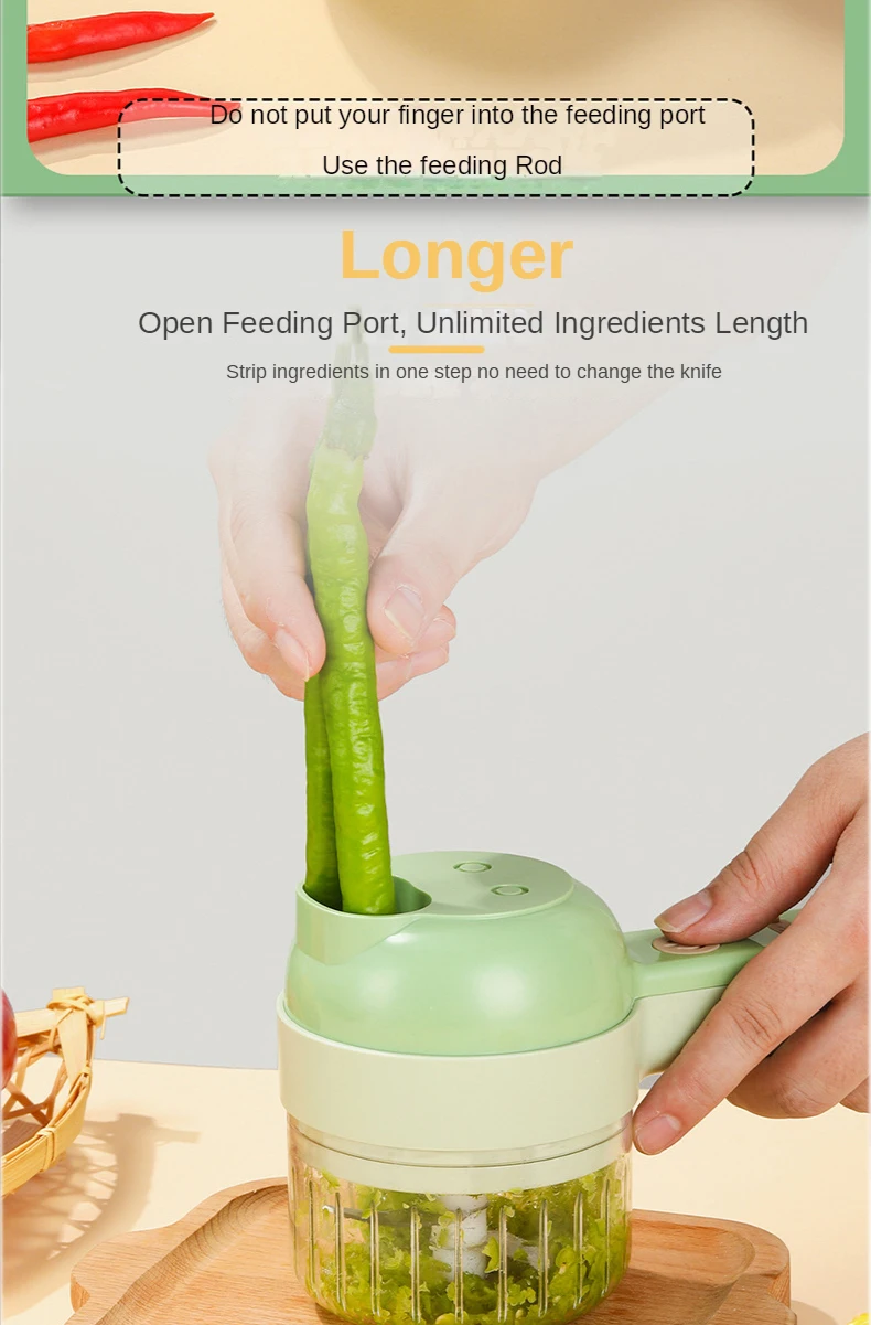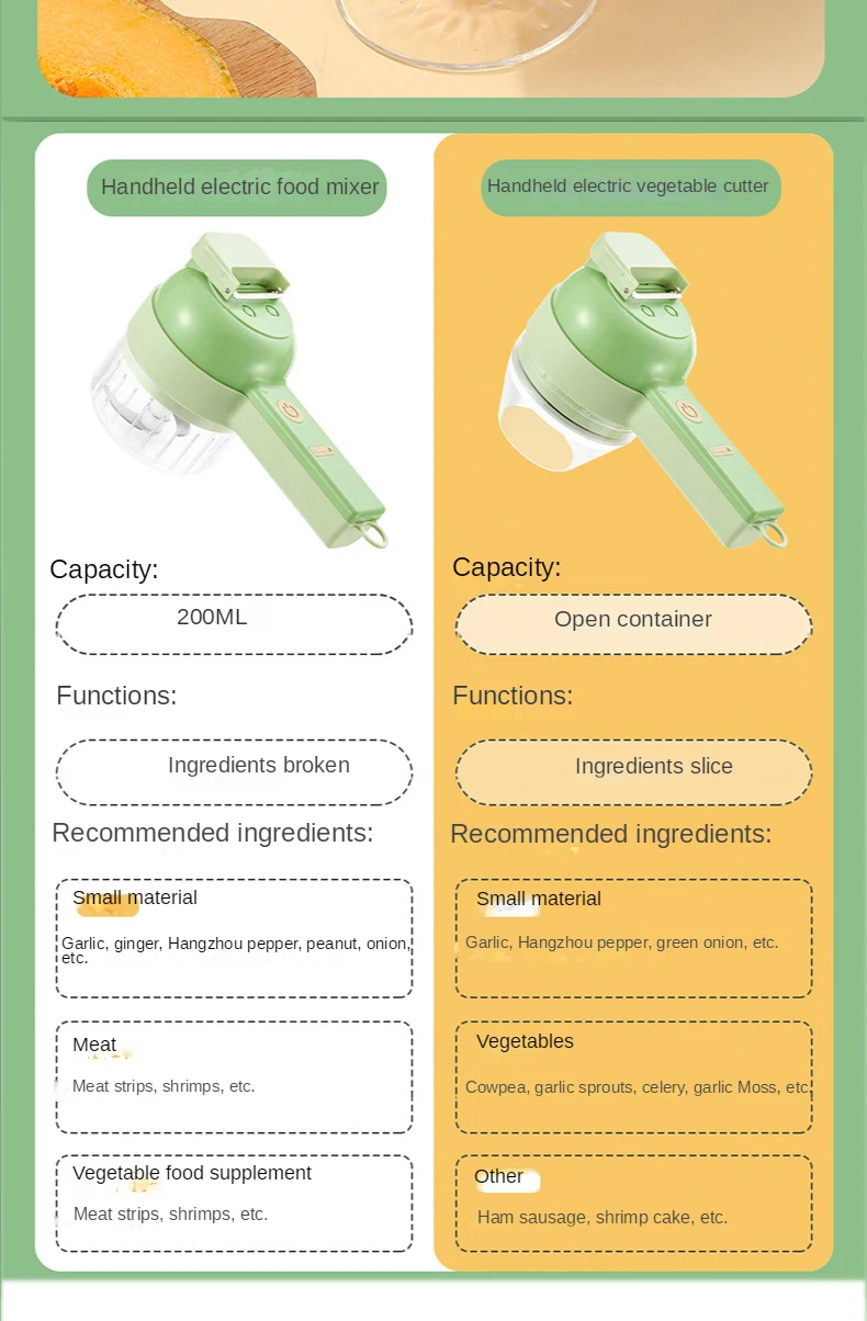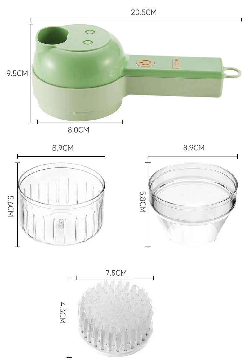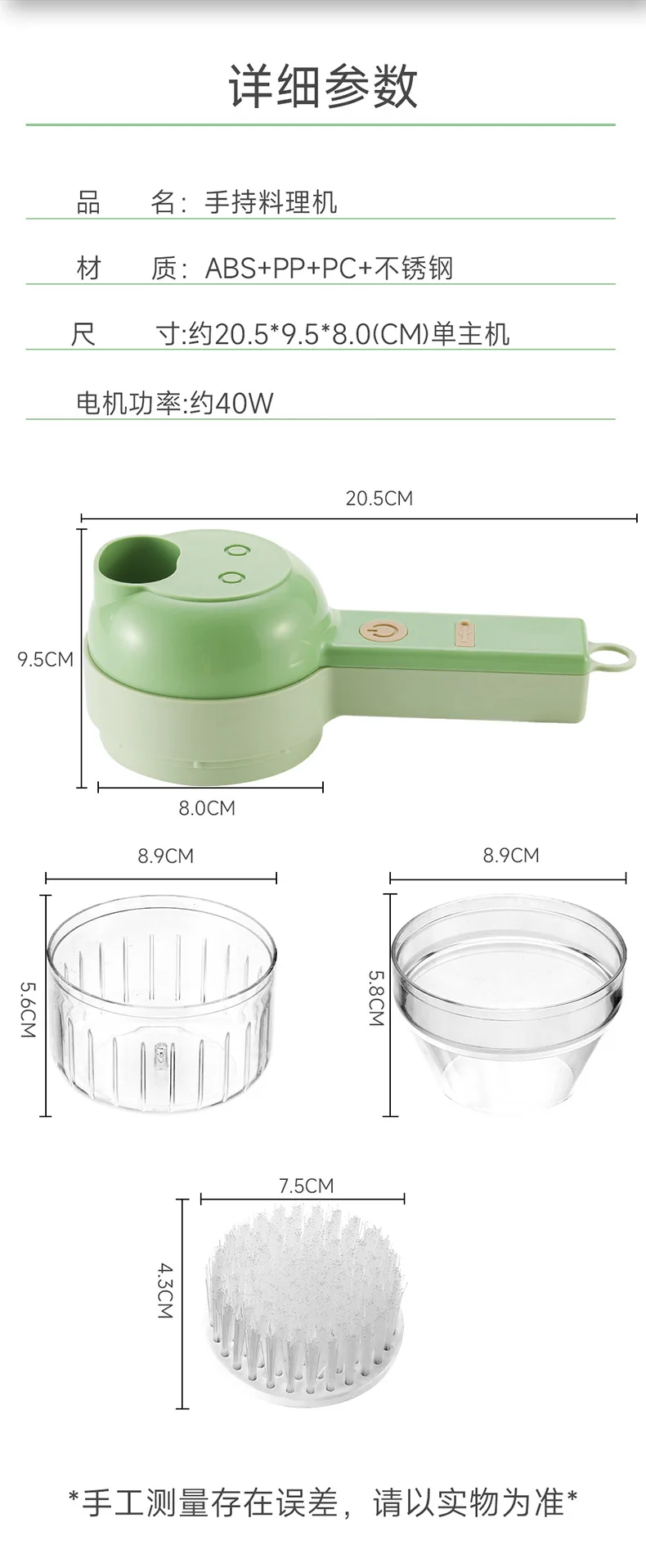 •With it, you can have an electric vegetable slicer, an electric meat grinder and an electric cleaning brush at the same time, and one machine can be used for multiple purposes.
