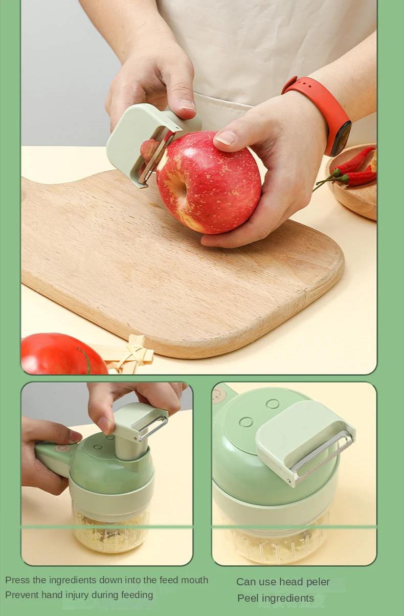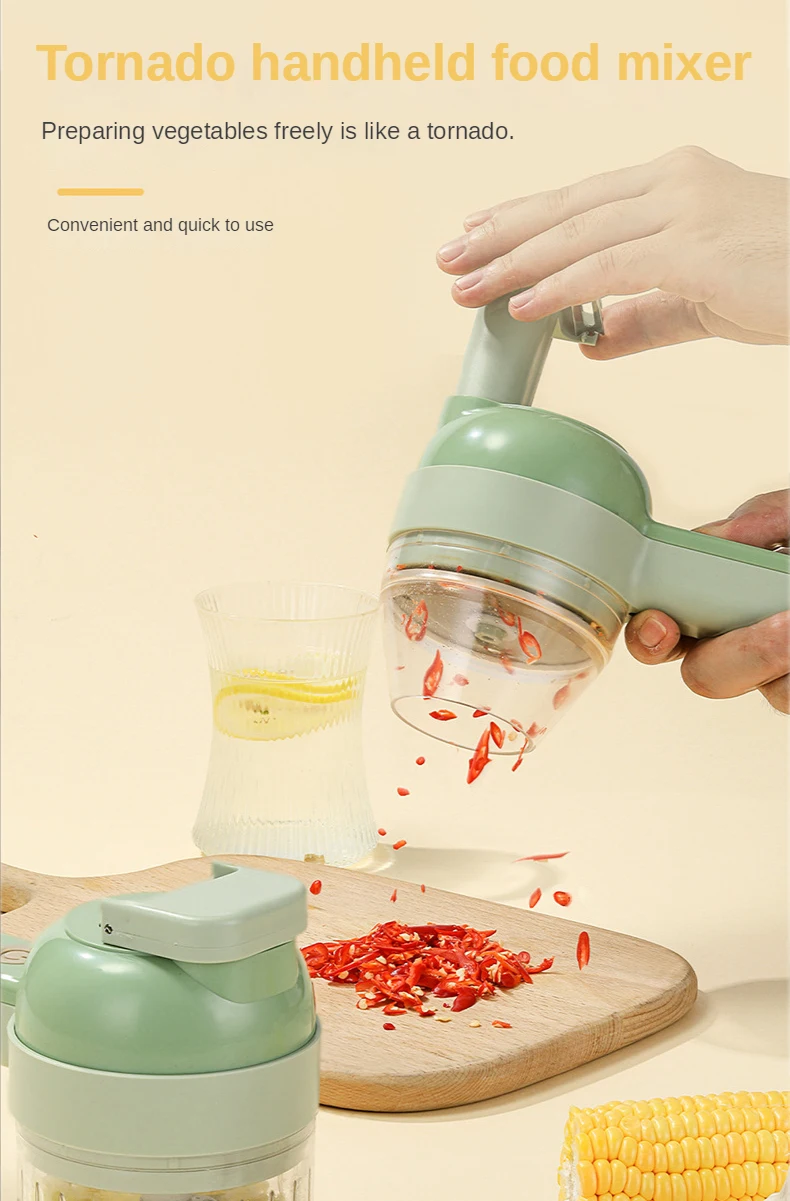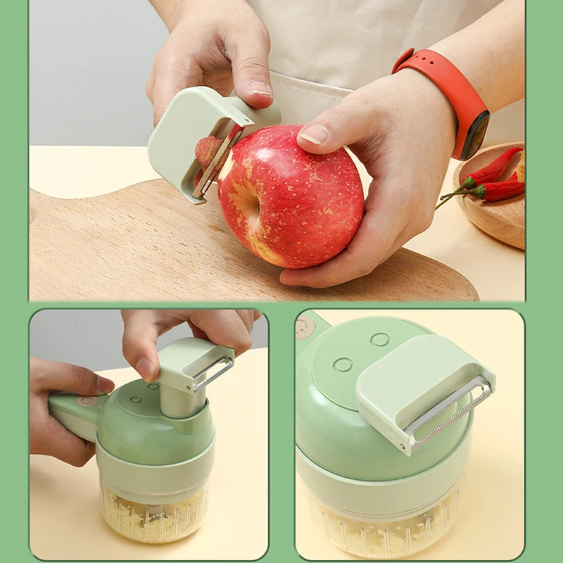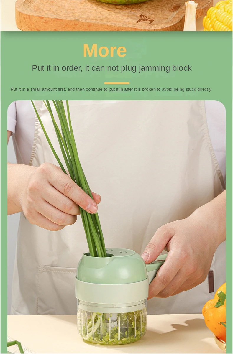 •With it, you can have an electric vegetable slicer, an electric meat grinder and an electric cleaning brush at the same time, and one machine can be used for multiple purposes.
