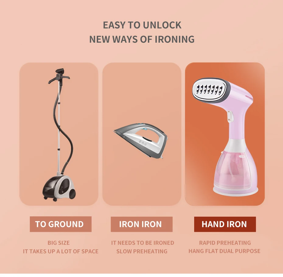 Powerful functions: It can be used as a steam iron, or as a garment steamer. you can use it to steam clothes, bedding, tablecloths, sofas, toys and other fabrics.