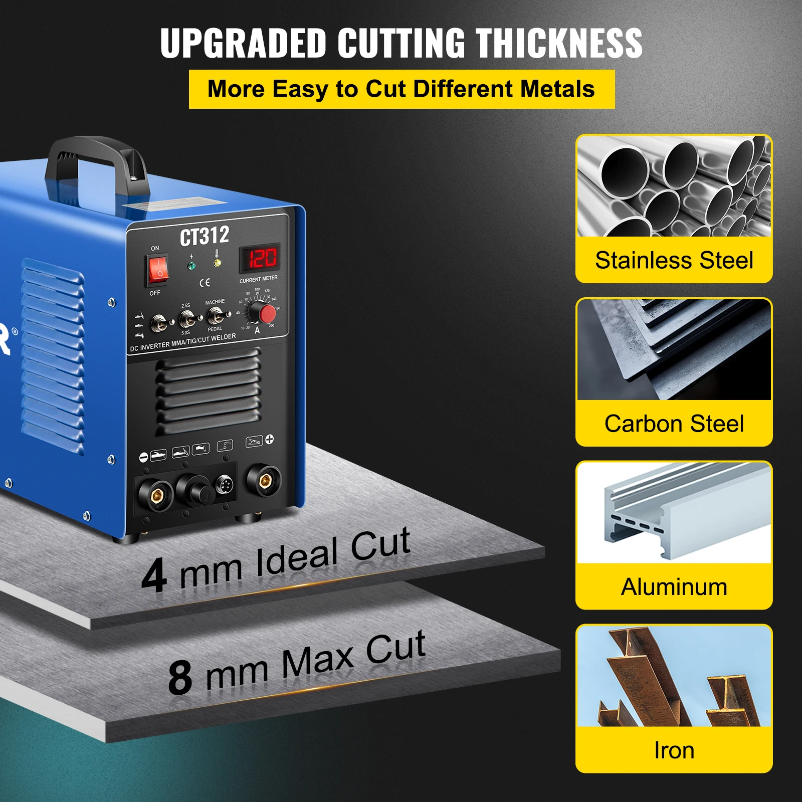 Advanced IGBT Technology: Our CT-312 adopts the most advanced IGBT inverter technology with excellent arc stability. Suitable for welding carbon steel, iron, stainless steel, aluminum and other metals.