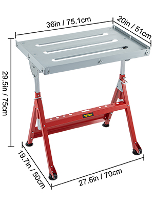 Adjustable Height: There are four height levels to choose from: 30.7″/78 cm, 32.7″/83 cm 34.6″/88 cm, and 36.6″/93 cm. The table height is perfect for sit down welding and meets the needs of people with different heights.