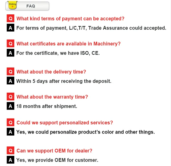 4.All sapre and accessory parts adopts stamping, casting, modeling, plastic injection technical production processes, are all under standardization, large-scale production.