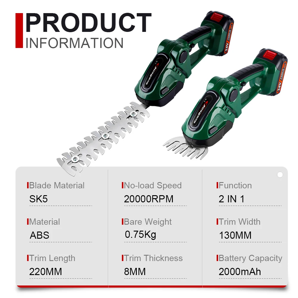 – Equipped with two different blades, it can be replaced easily and safely without tools.Meet the different needs of your garden.